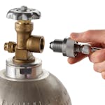 Connect to compressed gas cylinder valves without a wrench or thread sealant