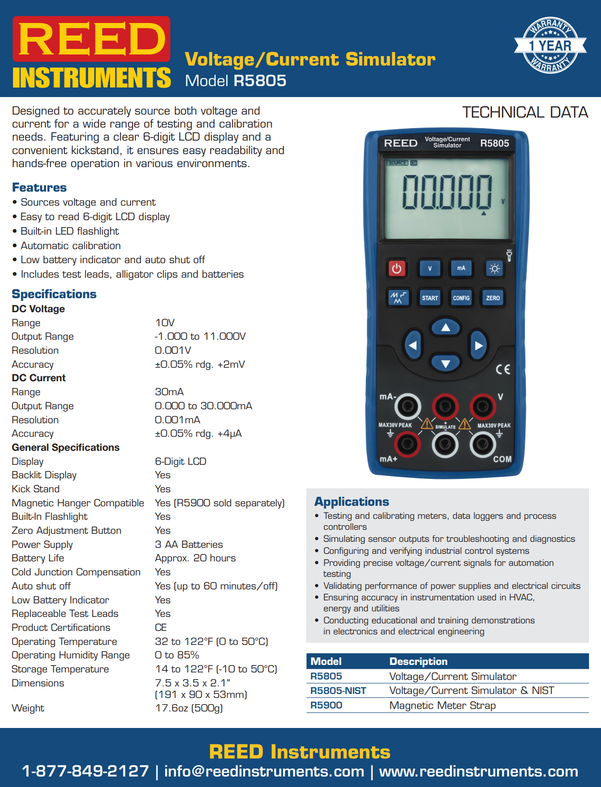 R5805 전압/전류 시뮬레이터는 다양한 테스트 및 보정 요구 사항을 충족하기 위해 전압과 전류를 정확하게 공급하도록 설계되었습니다. 선명한 6자리 LCD 디스플레이와 편리한 킥스탠드가 특징인 이 제품은 다양한 환경에서 쉬운 가독성과 핸즈프리 조작을 보장합니다.