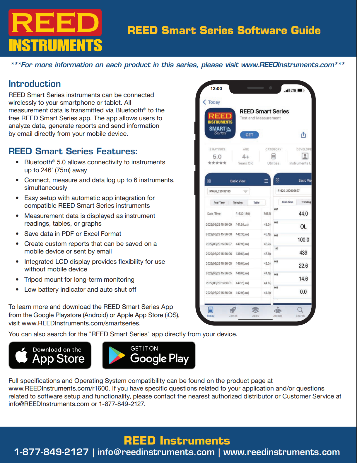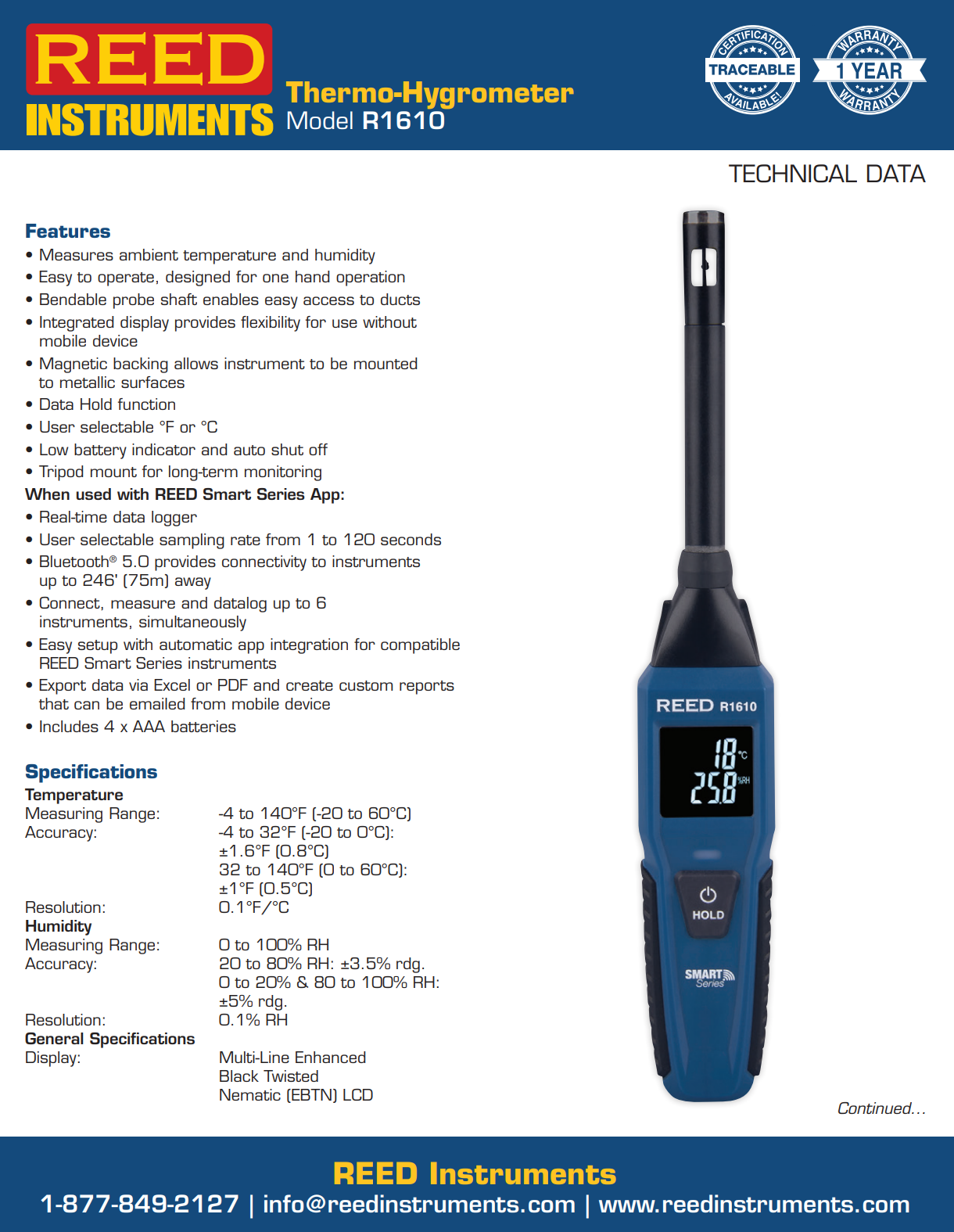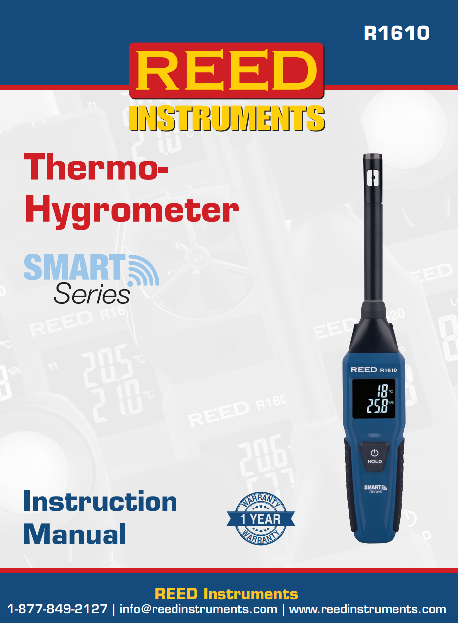 이 기기는 주변 온도와 습도를 측정합니다. 단독으로도 사용할 수 있고, Android 및 iOS에서 다운로드 가능한 REED Smart Series App과 연동하여 사용할 수도 있습니다. App과 연결하면 R1610을 이용해 일정 기간 동안 측정 데이터를 기록하도록 설정할 수 있습니다.