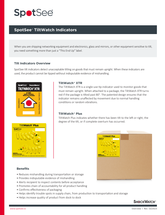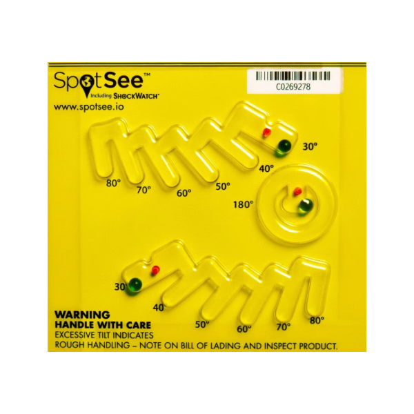 Tilt Watch Plus는 좌측 또는 우측으로 기울었는지, 기울어진 정도(각도), 또는 완전히 전복 되었는지 여부를 확인할 수 있는 인디케이터입니다.