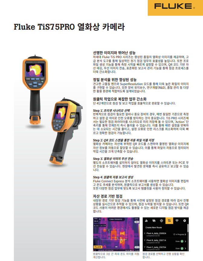 차세대 Fluke TiS PRO 시리즈는 향상된 열화상 품질과 고급 분석 기능을 통해 정기 점검 업무의 효율을 극대화합니다.